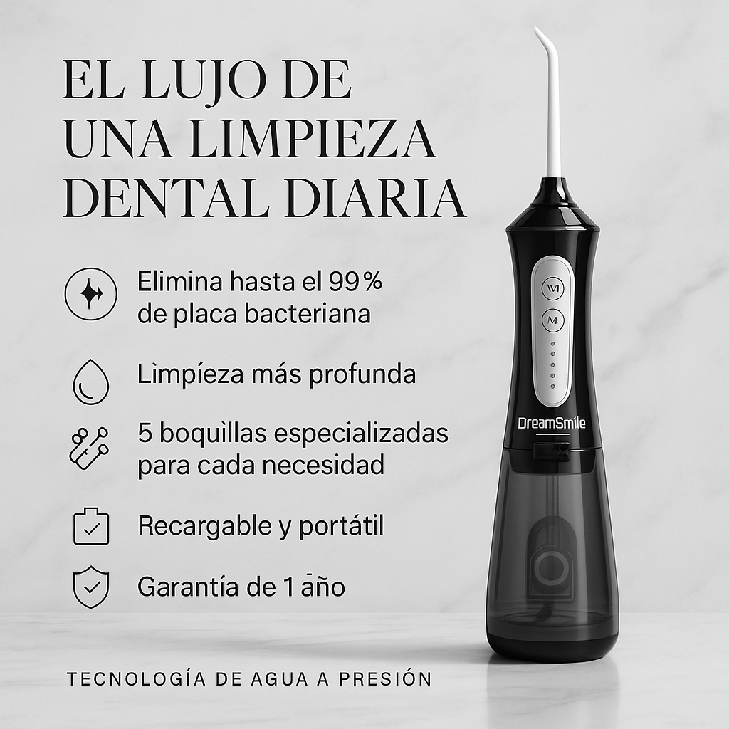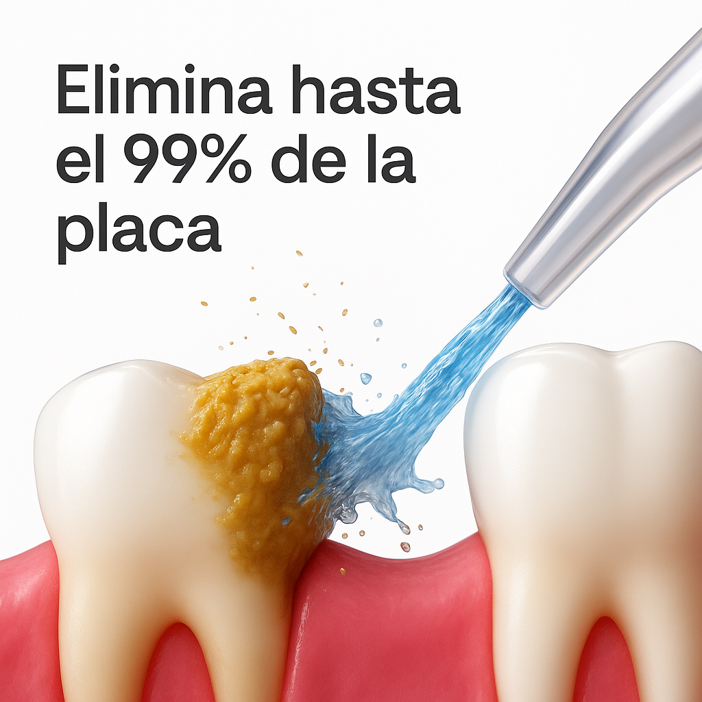 Imaginá lavar la mitad de tu plato después de comer… así funciona tu cepillo. El irrigador bucal elimina hasta el 99% de la placa bacteriana, completando tu higiene.