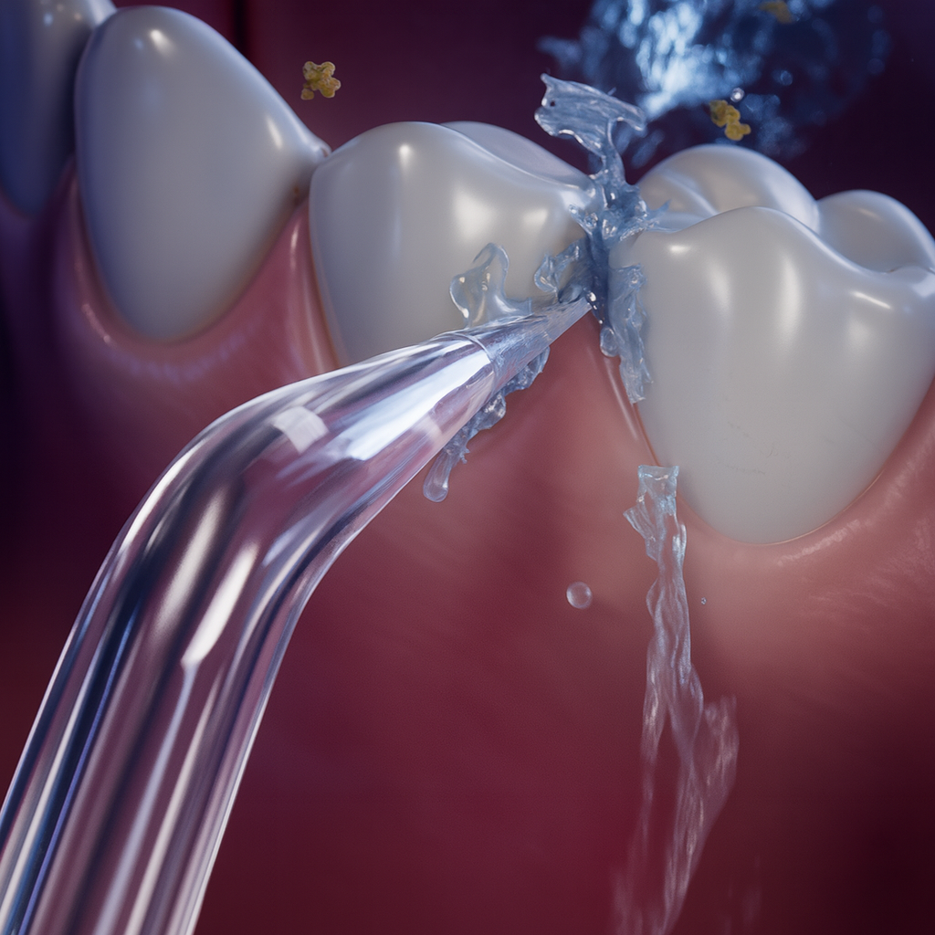 El irrigador bucal masajea suavemente tus encías, reduce la inflamación y mejora su salud sin dolor ni molestias.